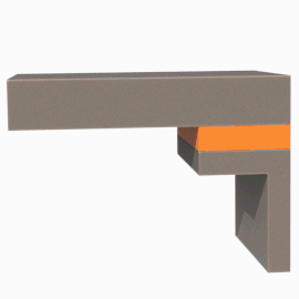 This basic design using a perpendicular butt joint is not ideal for adhesive bonding. The main stress is cleavage which is highly unfavorable in adhesive bonding. Modifying the original design adds an additional component to reinforce bonding of the original components. This redistributes some of the cleavage stress into a shear stress, strengthening the bond. A mechanical component of the outer reinforcement may also prevent impact forces. However, this joint requires the use of a second piece of material and would likely require a two-step bonding process.